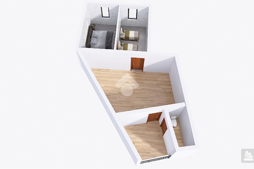 Superata la porta d’ingresso accediamo al piano terra dove, in ottica di ristrutturazione, è possibile ricavare la zona giorno con la cucina separata abitabile, una camera da letto matrimoniale ed un comodo locale, fruibile come studio.