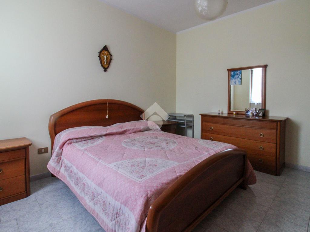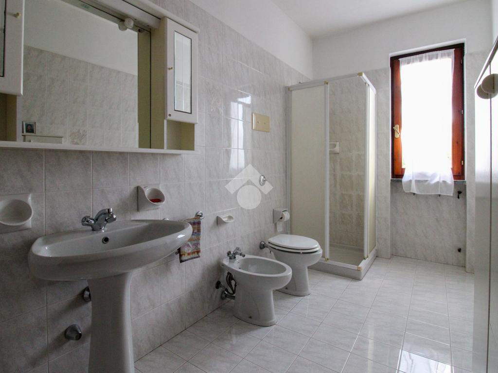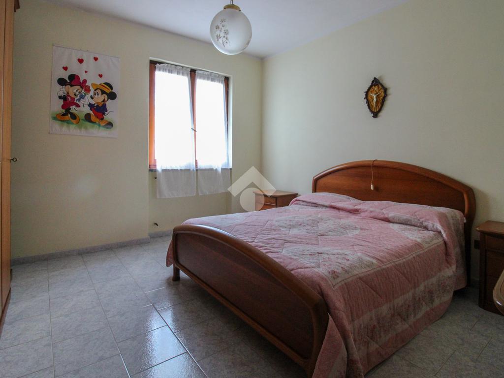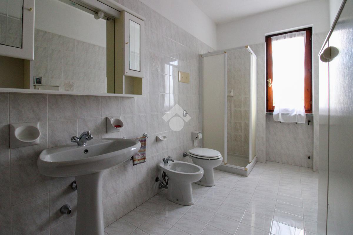 Raggiungiamo il piano primo dove troviamo la camera da letto matrimoniale e un ampio bagno finestrato con box doccia, dotato di sanitari in ceramica.