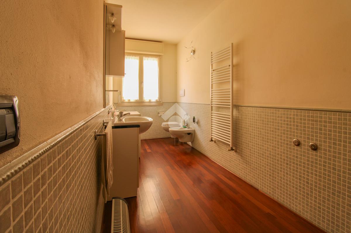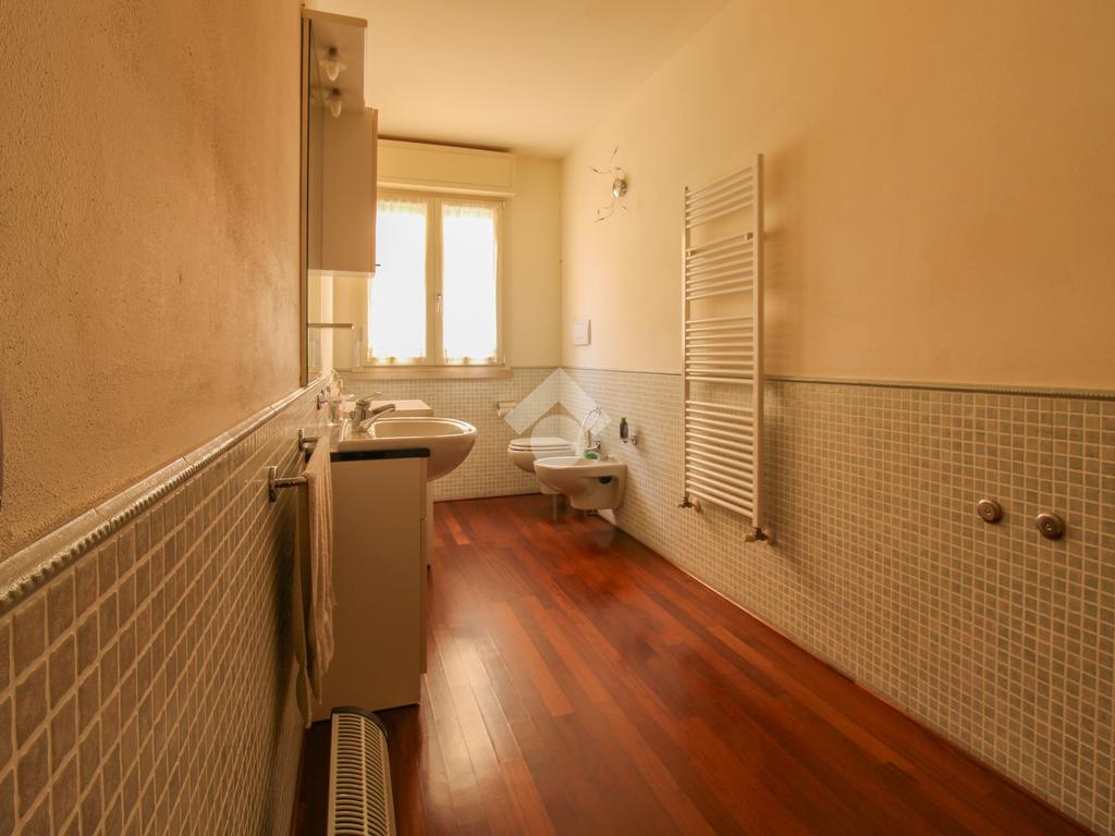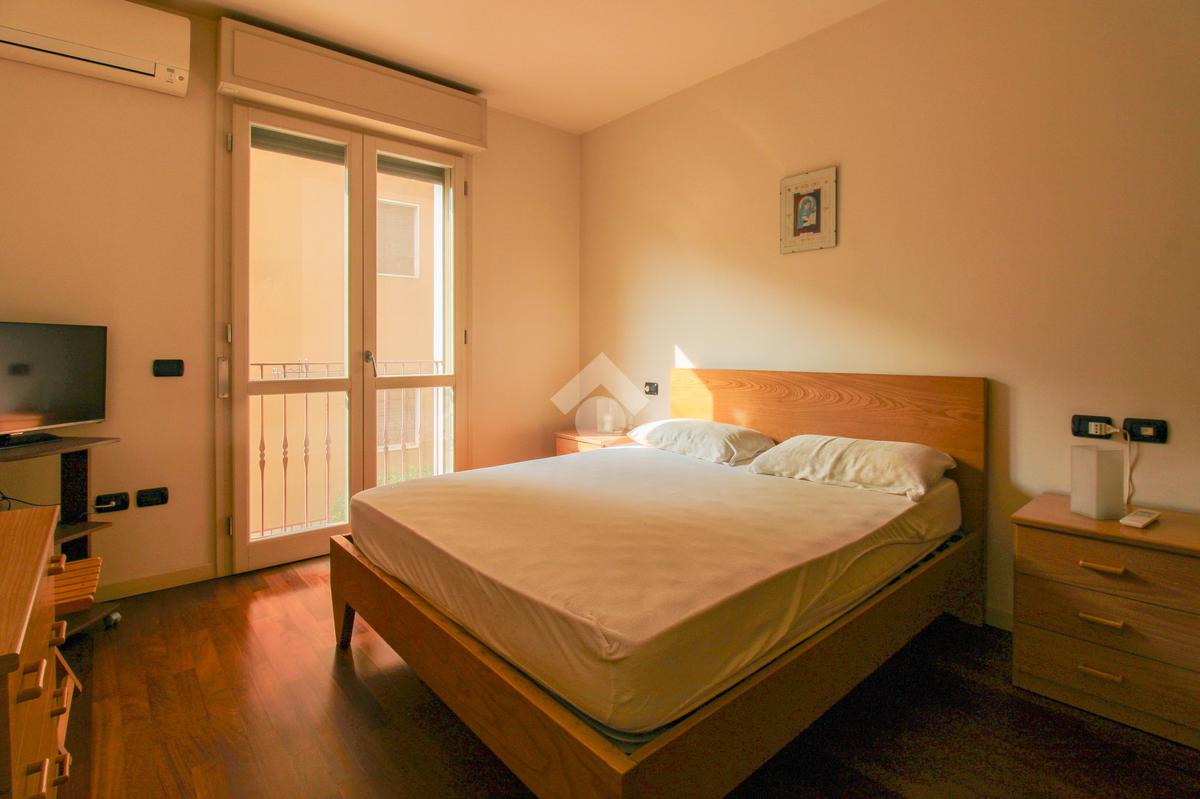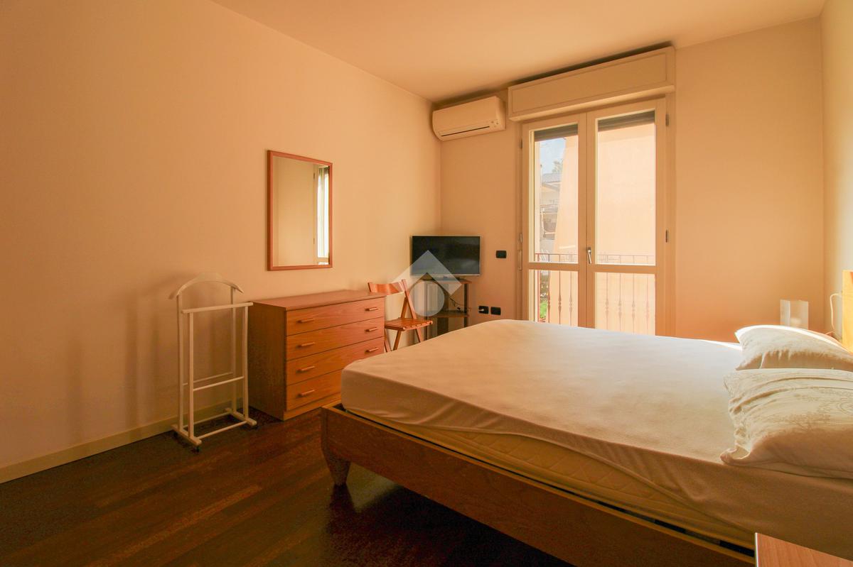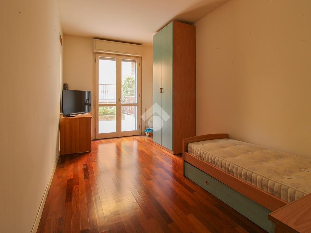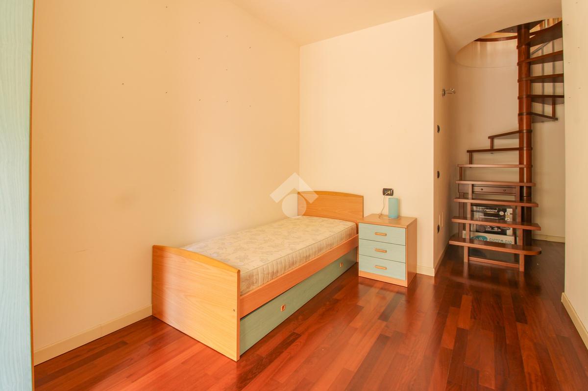 Raggiungiamo la zona notte, dove troviamo una luminosa camera da letto matrimoniale, un comodo ripostiglio e un ampio bagno finestrato con box doccia.