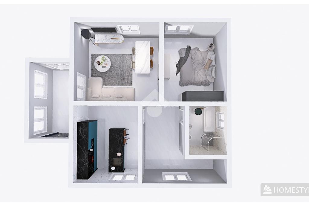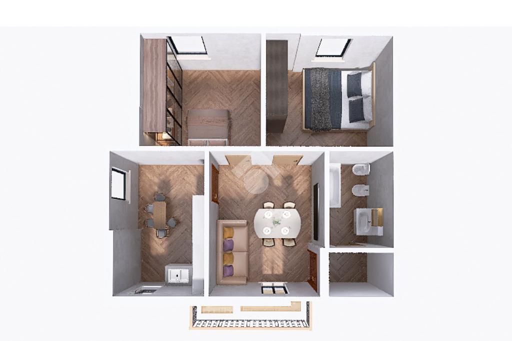 Proseguendo, raggiungiamo la zona notte composta da una luminosa camera da letto matrimoniale e da un bagno finestrato dotato di box doccia e vasca.