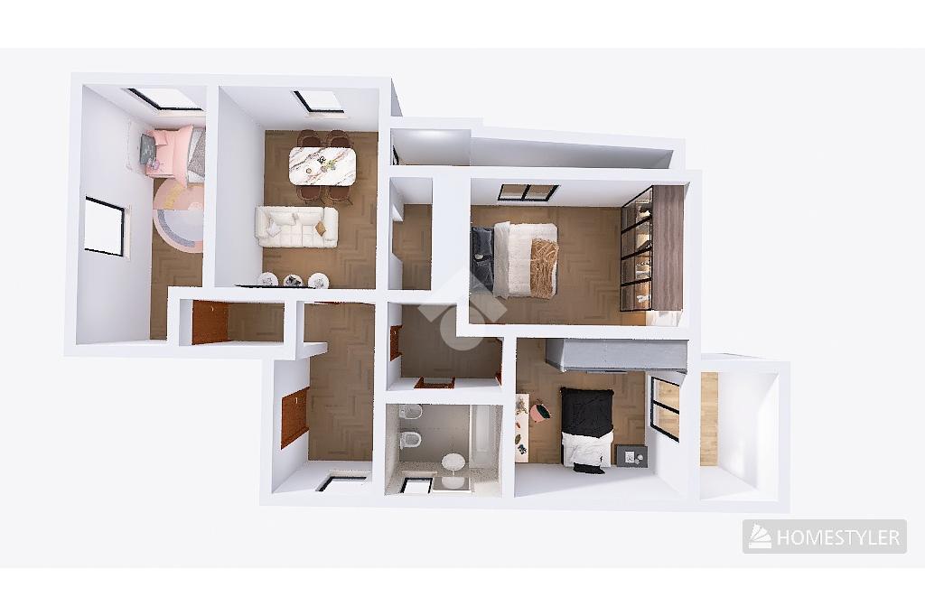 Completa il piano un bagno finestrato con sanitari in ceramica e box doccia.