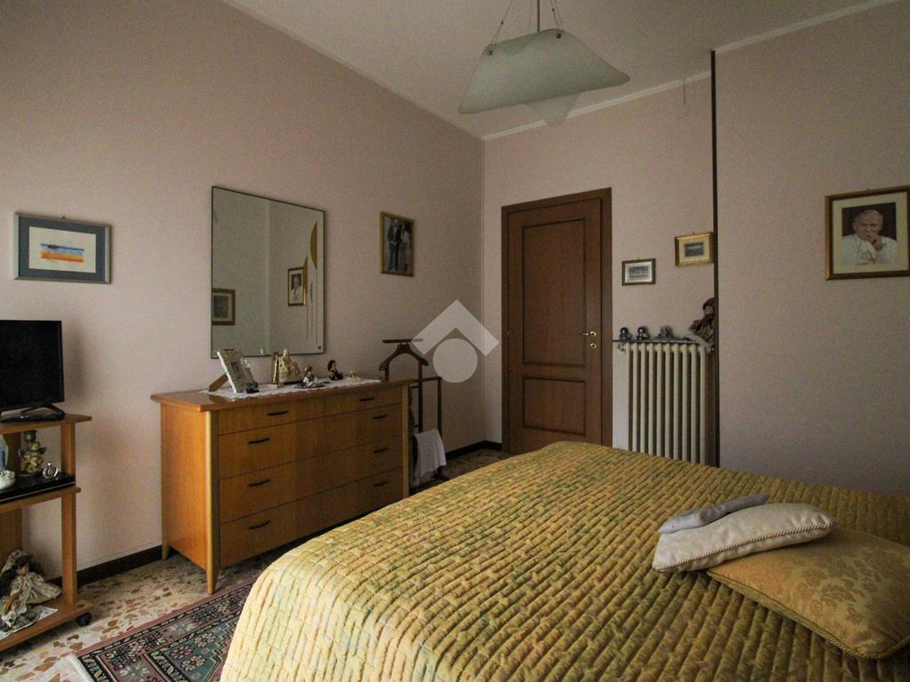A sinistra troviamo la sala da pranzo e una camera da letto matrimoniale dove due portefinestre ci conducono ad un ampio balcone.