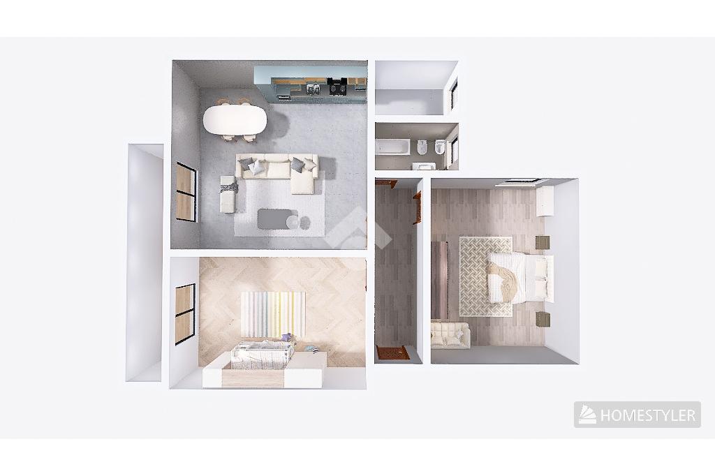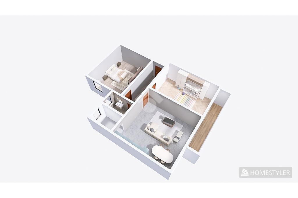 L'abitazione si compone di: due camere da letto matrimoniali, soggiorno e cucina separati e un balcone privato che collega direttamente la zona notte.