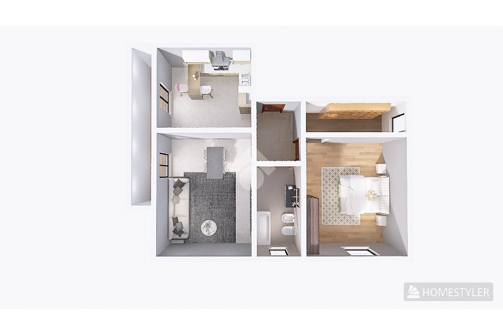 L'abitazione si compone di: camera da letto matrimoniale, soggiorno e cucina separati, un balcone privato e la possibilità di trasformare grazie alle ampie metrature una seconda camera da letto.