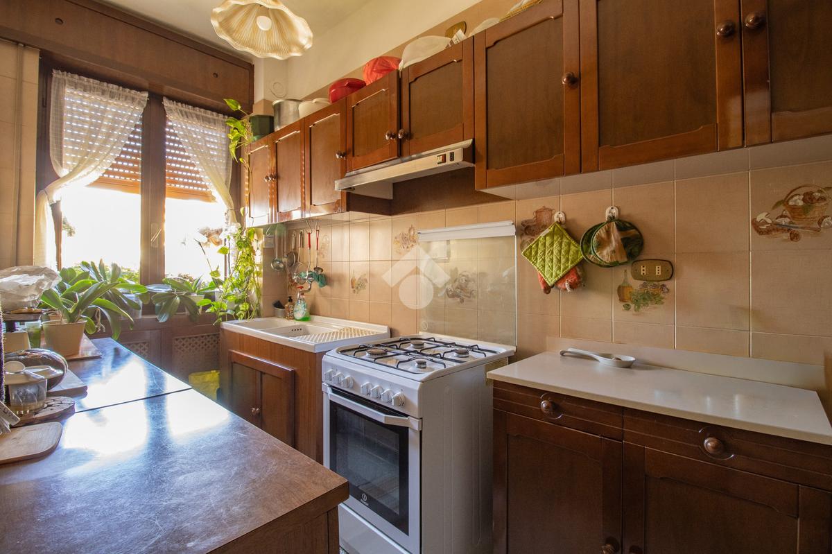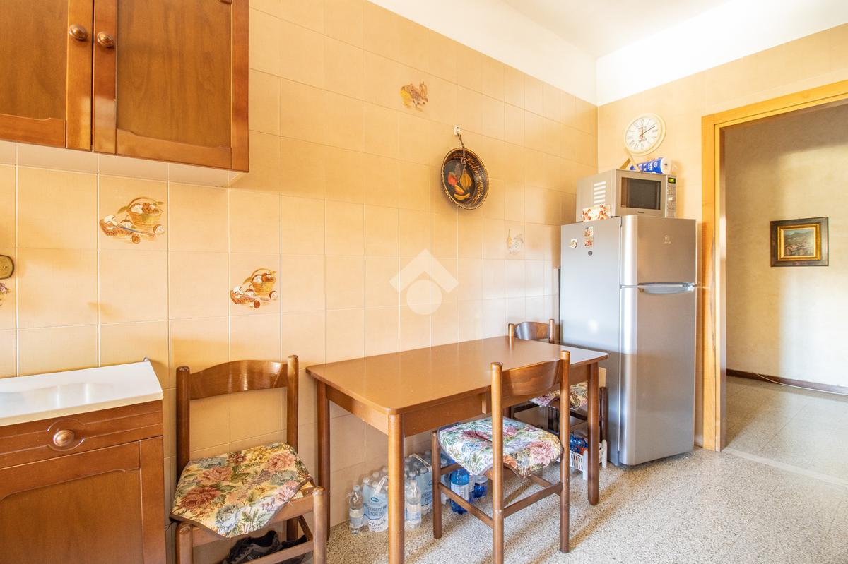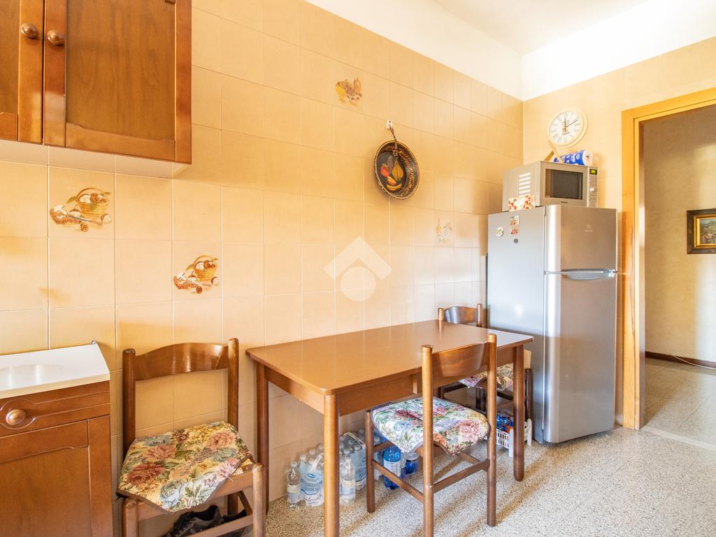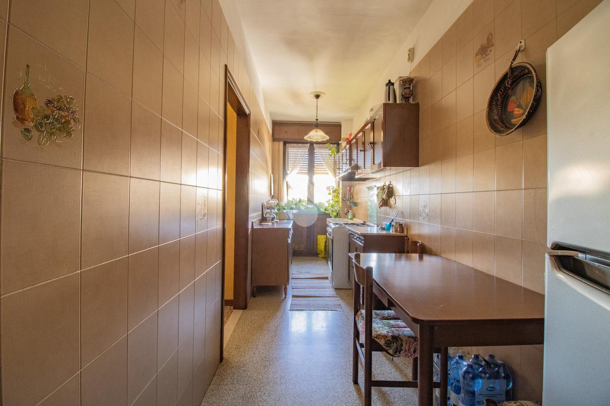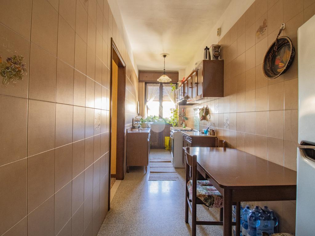 Superata la porta d’ingresso, l’ampio disimpegno ci conduce sulla destra alla zona giorno con cucina sperata abitabile.