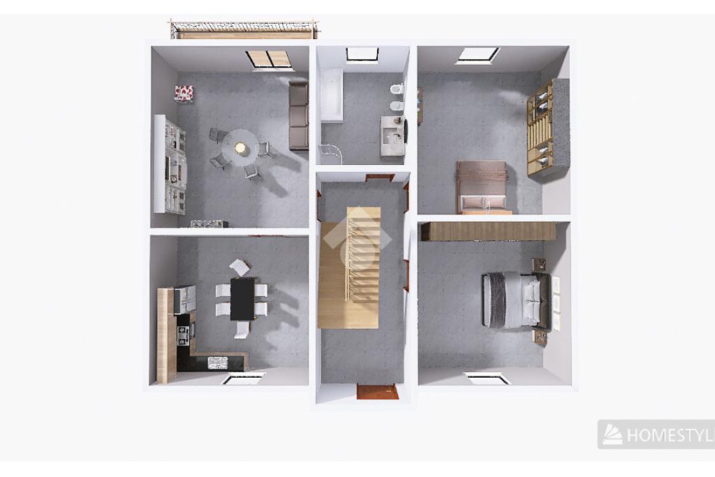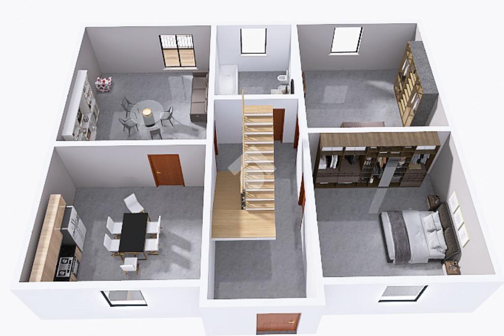 Sulla destra troviamo due spaziose camere da letto matrimoniali e frontalmente un luminoso bagno finestrato con sanitari in ceramica, box doccia e vasca da bagno.