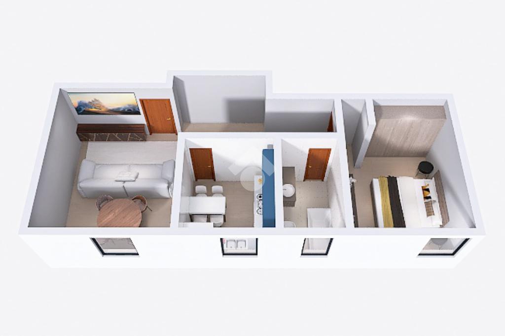 Completano il piano un bagno finestrato con vasca e una spaziosa camera matrimoniale.