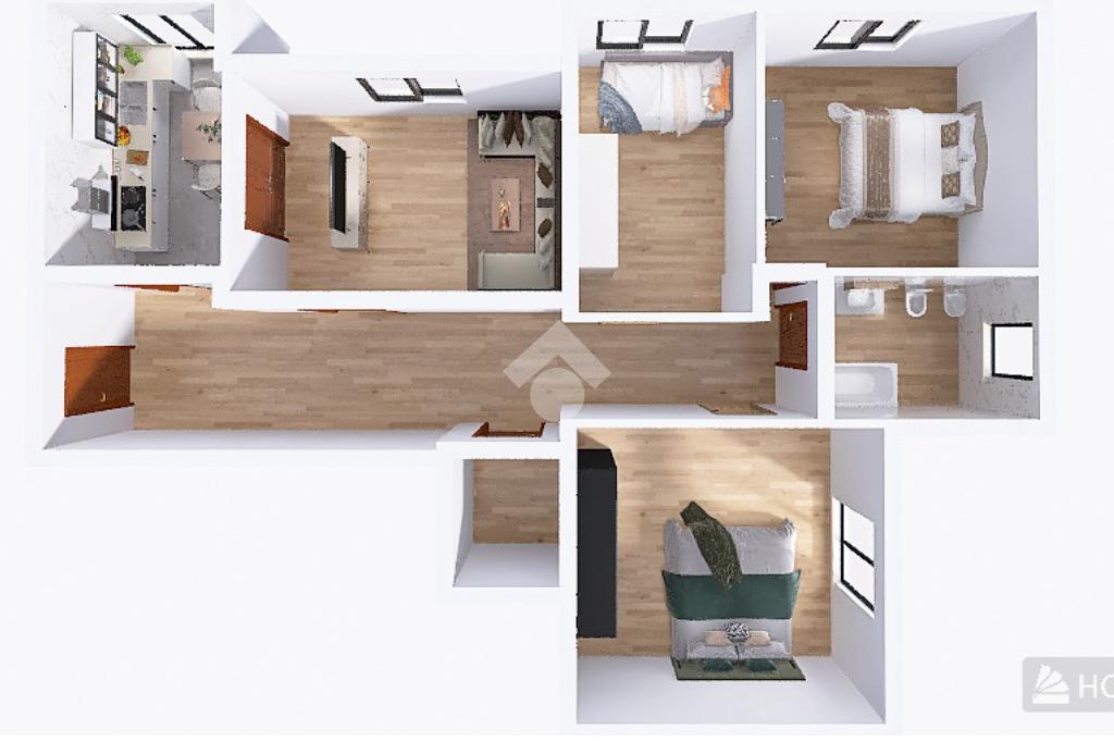 Proseguendo, a destra troviamo la zona notte con tre spaziose e luminose camere da letto matrimoniali.