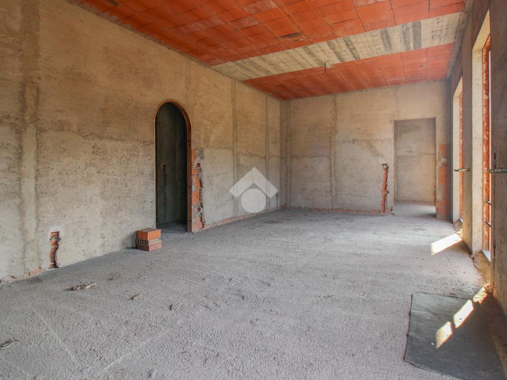 L’immobile, edificato nel 1990, non è mai stato ultimato e necessita di lavori che prevendono la posatura di tutti i pavimenti, dei serramenti e l’installazione degli impianti elettrico, idraulico e di riscaldamento.
