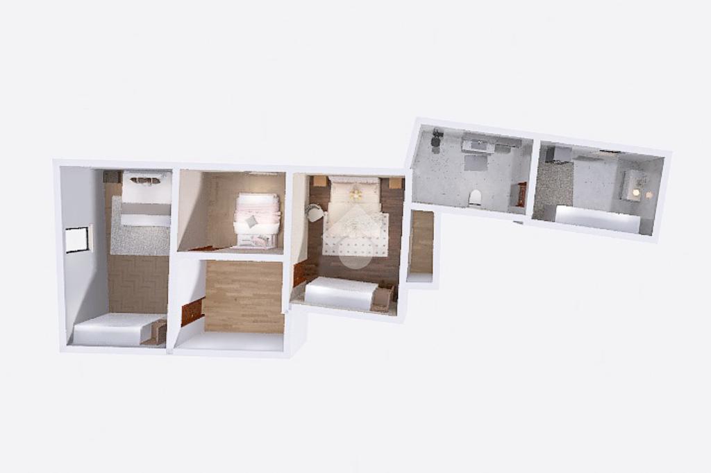 Al piano primo, raggiungiamo la zona notte dove, sempre in ottica di ristrutturazione, possiamo ricavare due camere matrimoniali e una doppia.