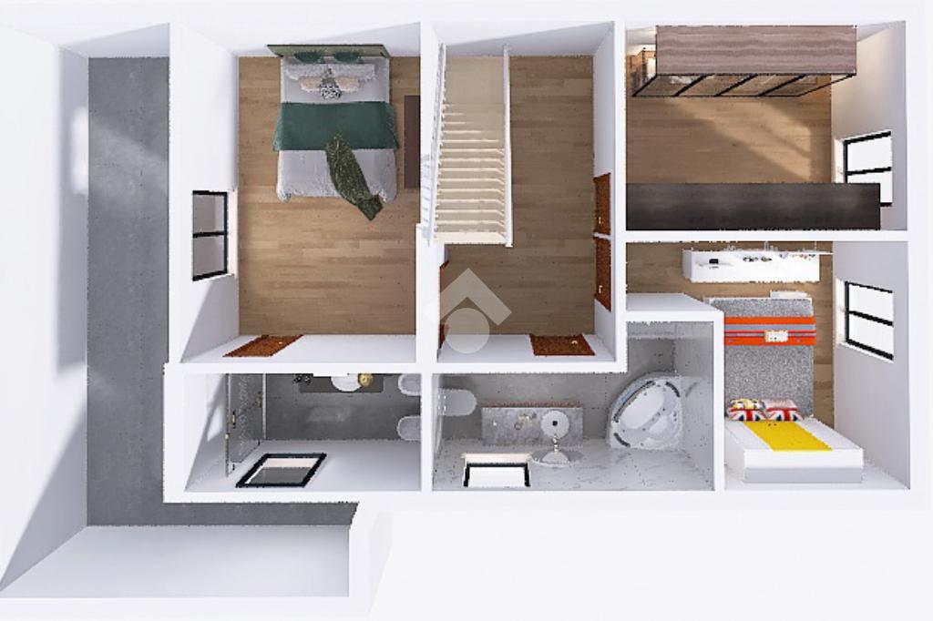Un'elegante scala interna in marmo conduce al piano primo, dedicato alla zona notte, dove troviamo una luminosa camera matrimoniale con bagno privato finestrato e accesso a un terrazzo vivibile, una camera singola, un bagno finestrato con sanitari in ceramica e vasca idromassaggio ed una seconda camera matrimoniale.