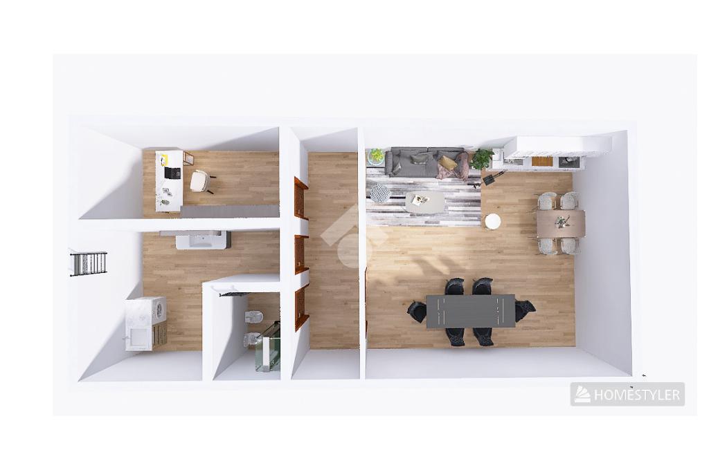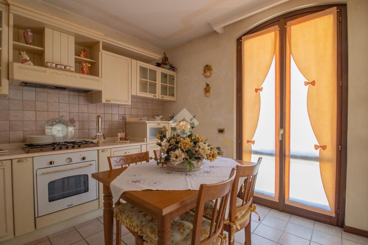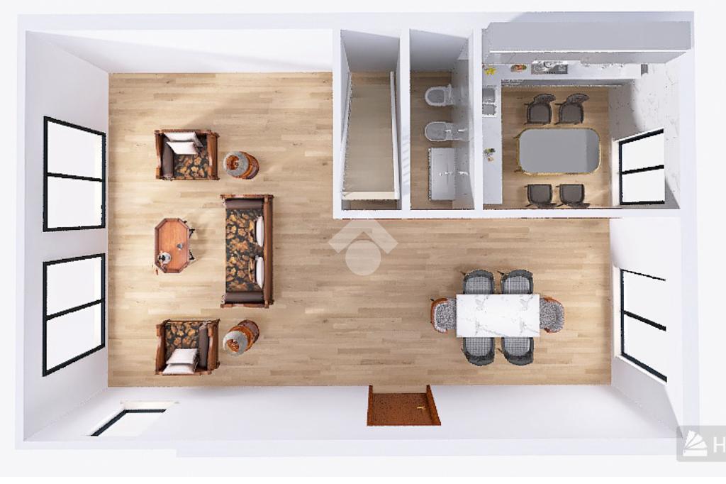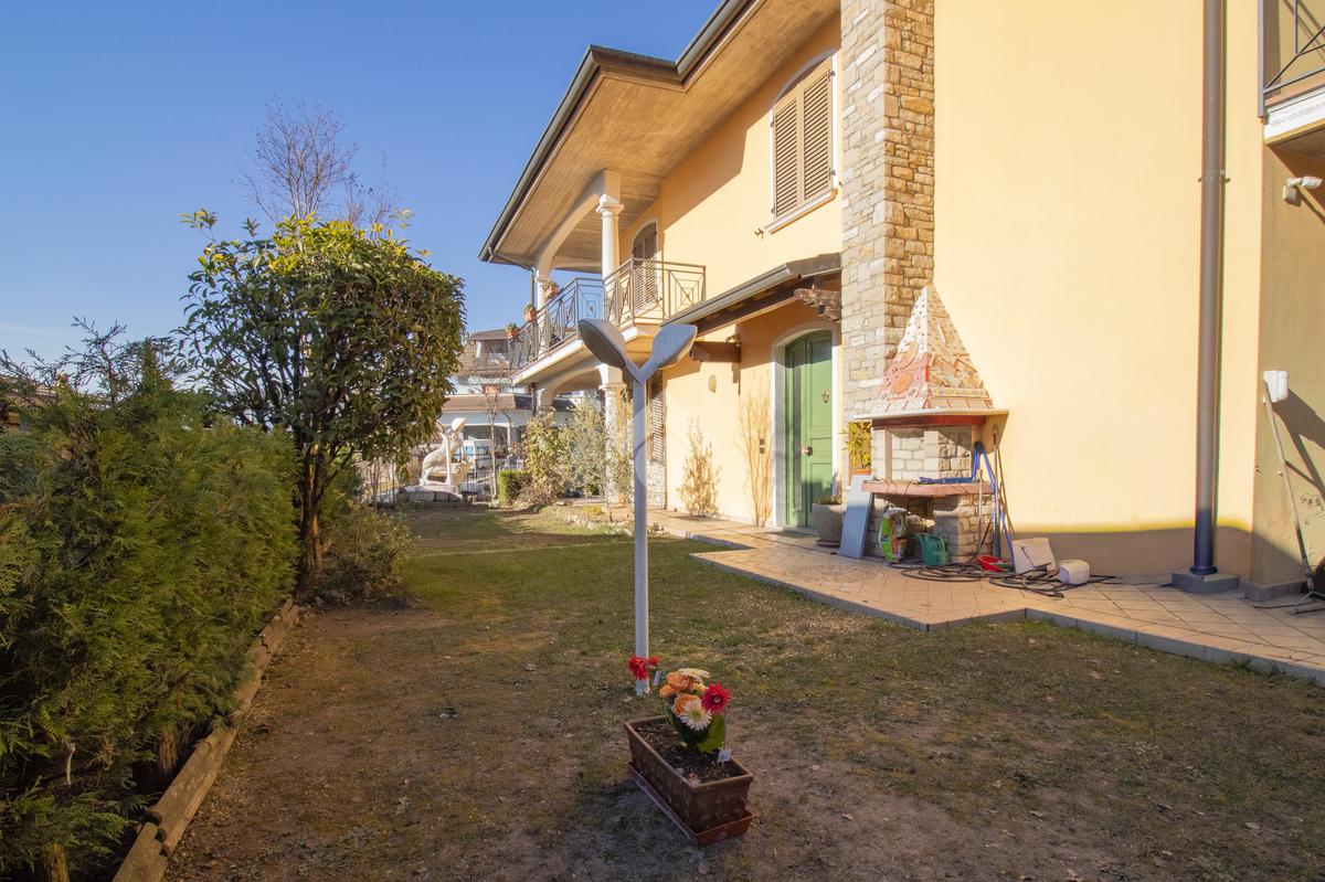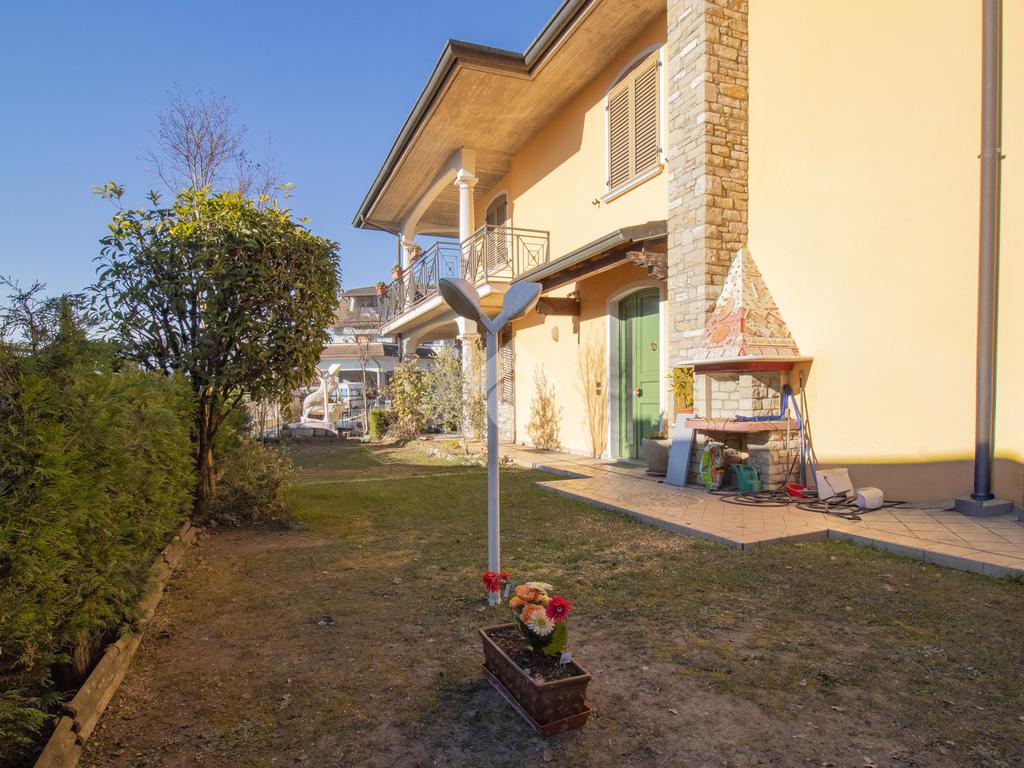La cucina abitabile separata assicura praticità e comfort, mentre il bagno di servizio completa il livello. Dal soggiorno, attraverso una portafinestra, si accede direttamente al giardino sul retro, ideale come spazio verde esclusivo.